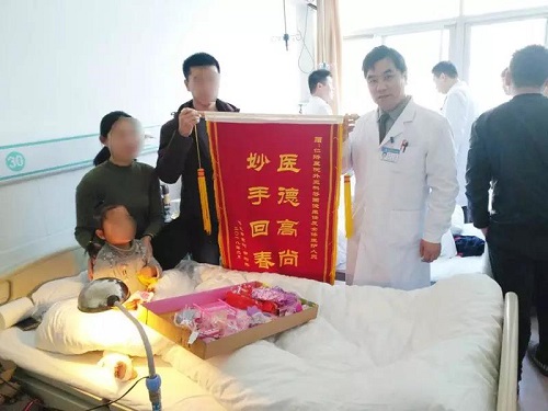 一面小小的锦旗蕴含着对谷国俊副主任道不尽的感恩。送锦旗的病友,是一名3岁6个月女孩的家属,孩子曾在3个月前因右胫骨骨折住院治疗,此次是第二次来院。当再次体验了外三科谷国俊副主任精湛的技术与贴心的服务后,为其送来了锦旗表示感谢。一面小小的锦旗,却蕴含了对谷主任和全科医护人员的道不尽的感谢与满意。