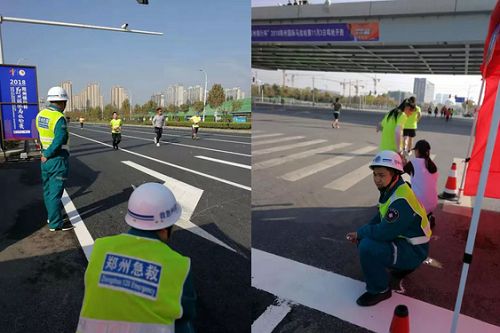 你参赛,我守护!郑州国际马拉松赛道上的“孔雀蓝”