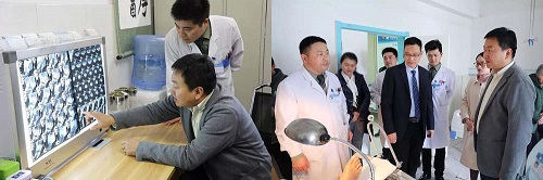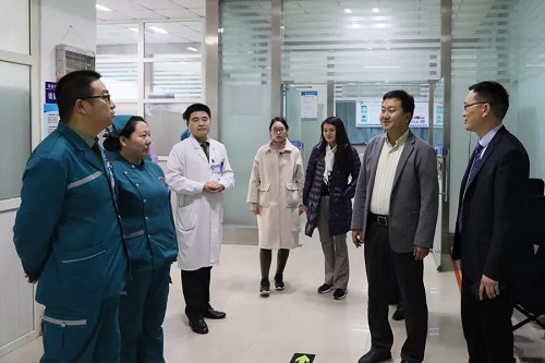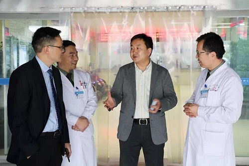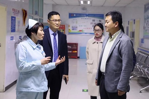 下午,王鑫教授、李琛经理一行在谢书强副院长等的陪同下,来到各临床科室进行实地参观,科室负责人就病区的特色、收治情况以及新技术等进行讲解。