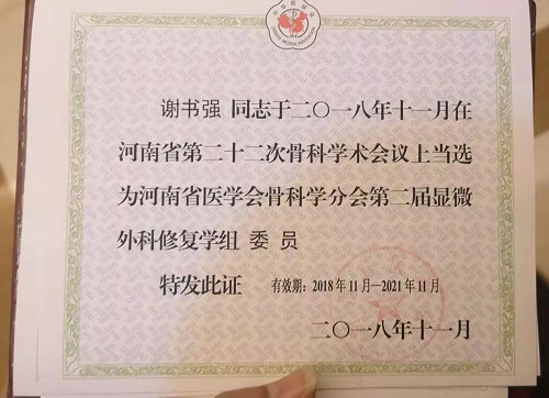 当选显微外科修复学组委员