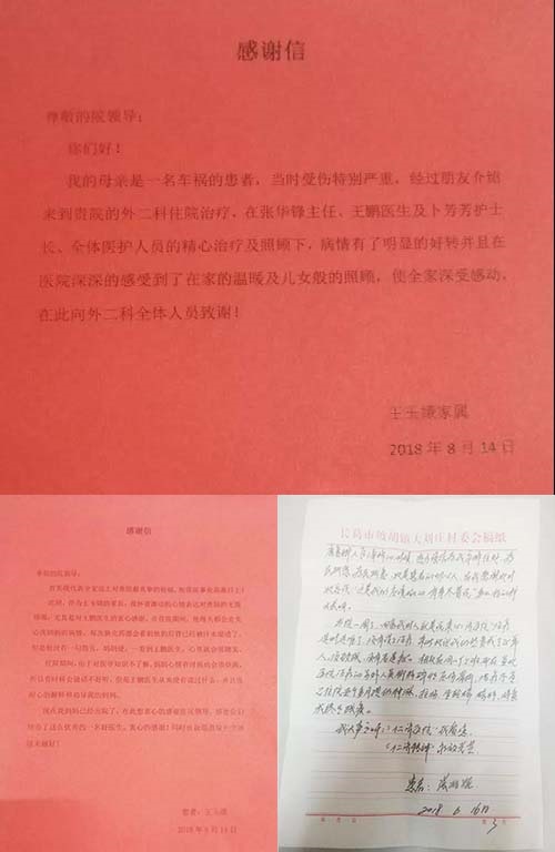 像这样的事情,不仅在外二科,在全院各个科室每天甚至每个小时都在发生着,他们一次收到的亲笔感谢信或者感谢锦旗就能高达三四封/面,病友们在信中直接表白,“我爱你,仁济”,亦或者多次“叩拜”医生,更有感谢医护时边说边哽咽的情况等不胜枚举,给医生带来了无数的感动和温暖。