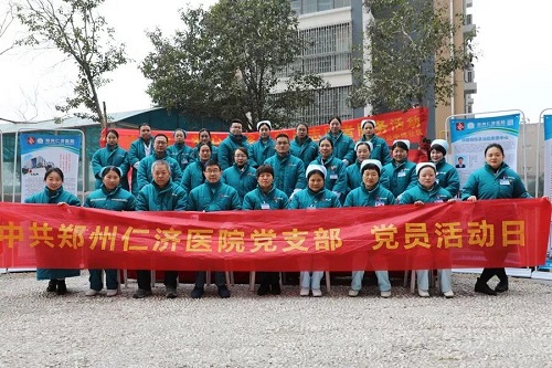 来自二里岗党工委、中博社区等的领导以及郑州仁济医院党支部书记郭涛霞、医院的党员、专家们近百人参加。