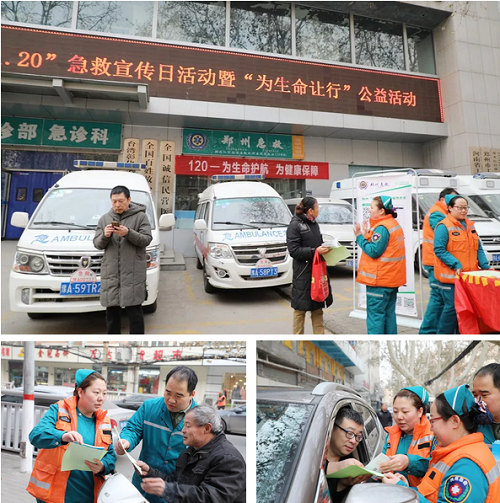 1月20日,省会郑州“1.20”急救宣传日。28号站(郑州仁济医院)积极响应郑州市紧急医疗救援中心开展的“2019年省会郑州‘1.20’急救宣传日活动暨‘为生命让行’公益活动”,在医院大门口、病房、公园等人员密集的地方,进行急救知识的宣教。