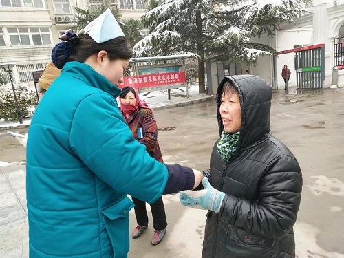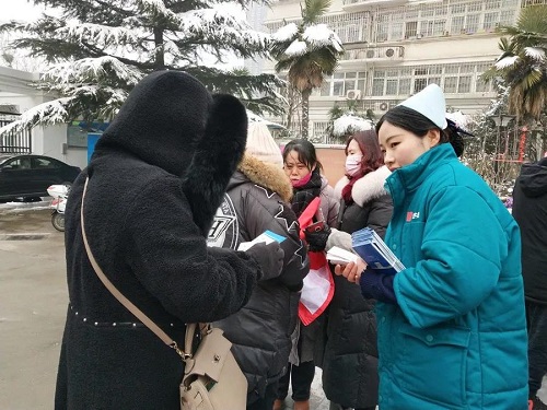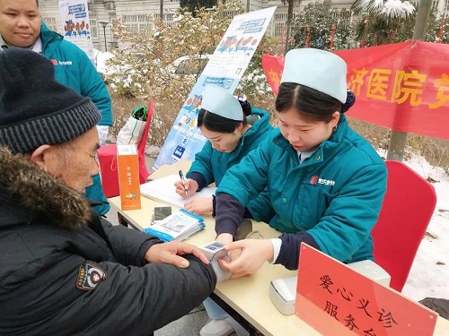 爱心义诊现场,医护人员为过往的行人量血压、检查身体、解疑答惑、发放健康宣教资料等。行人们看到这么冷的天,医护人员还坚持举行义诊,纷纷被感动了并连连称赞,“你们太敬业了,非常感谢!”