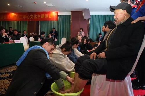 父母们刚刚平复的心情,又因一个简单的洗脚行动而泪流满面。享受着来自儿女们的孝心,他们被幸福环绕着。