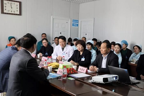 领导一行边聆听侯院长的介绍,边观看医院大楼的内部环境、装修、设置等,同时给出了宝贵的意见和建议,并与侯院长探讨了医院未来和社会办医的发展方向等。