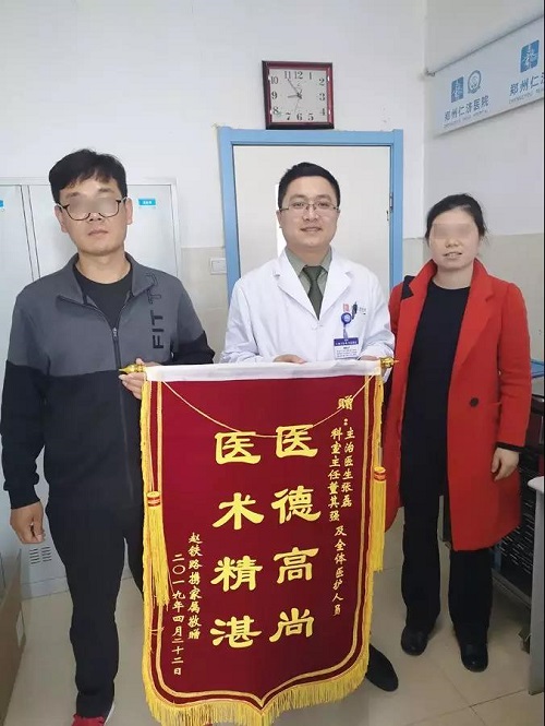 对于病友及家属的感谢,老院区的这位病友则是在康复后专程来到医院,将精心制作的锦旗送给了董其强主任、张磊医生以及全科的医护人员。