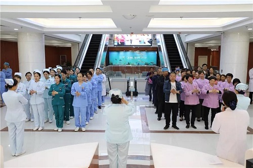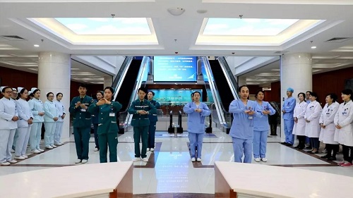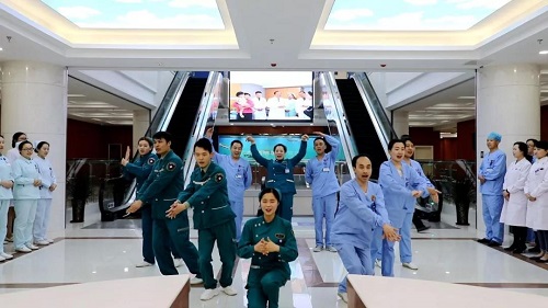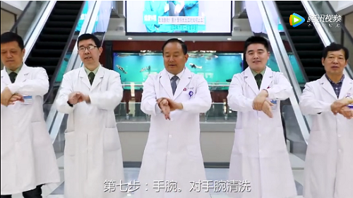 为了让手卫生宣教的覆盖面更广,医院采用了当下流行的“快闪”方式,组织医护人员在医院大厅跳起了“洗手舞”。