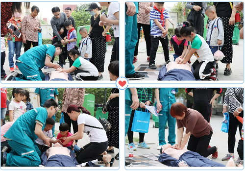 为了普及居民的急救技能,急救人员在义诊现场持续的演示和讲解着如何正确进行心肺复苏,居民们积极参与、认真学习并现场进行操作,针对不规范的地方,急救人员一一指正。