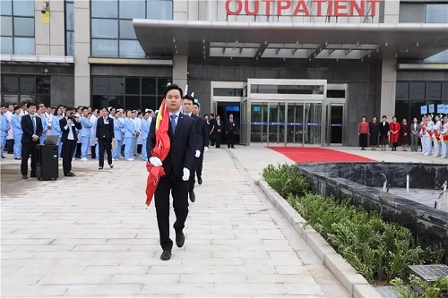 今天为了庆祝这个具有双重意义的日子,郑州仁济医院新院区举行了首次升旗仪式,院委领导班子以及医院全体员工400余人参加。