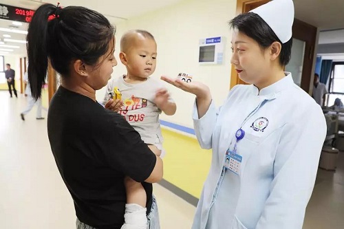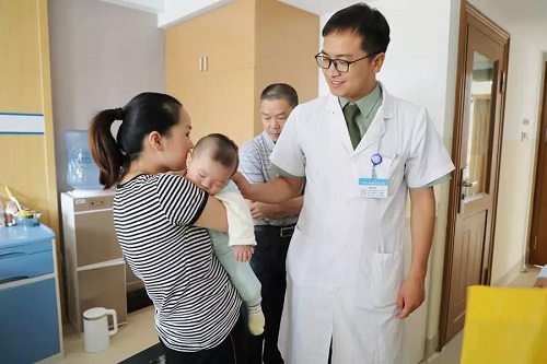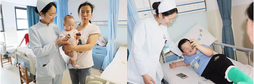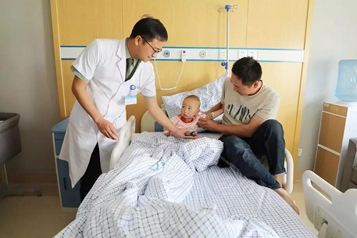治疗时严肃专注的医护人员,突然间变成了温柔的“奶爸奶妈”,有的小宝宝一下子不适应了,用萌萌的小眼神紧盯着,张主任伸开手掌突然出现在手心里的小汽车玩具让孩子的脸上又有了惊奇。