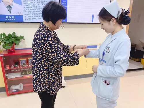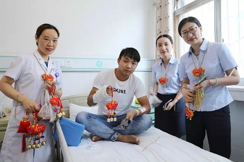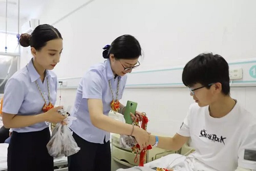 端午节(6月7日)这天,外四科住院病友的家属郝阿姨,特意准备了五彩绳,并亲手挨个为护士们系上,祝愿其端午安康、幸福吉祥。