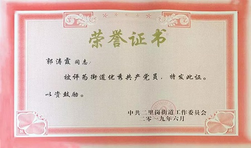 紧接着,在6月28日举行的“二里岗街道党工委2019年度‘七一’表彰大会暨新党员入党宣誓仪式”上,郑州仁济医院党支部被表彰为“先进基层党组织”,医院党支部书记郭涛霞被评为“街道优秀共产党员”的称号。