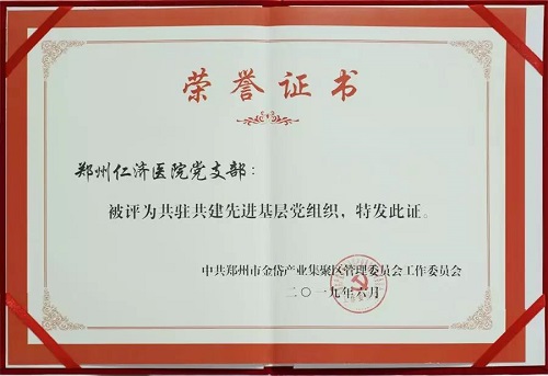 在6月26日金岱产业集聚区党工委七一表彰大会上,郑州仁济医院党支部被表彰为“共驻共建先进基层党组织”,郭涛霞书记代表医院领取了荣誉牌和证书。