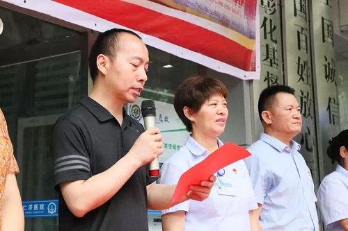 仪式上,奏响了庄严的国歌,郭涛霞书记发表了温暖人心的讲话。郭书记说,“为中华民族谋复兴、为全国人民谋幸福是我们党的初心和历史赋予的使命!作为一家医疗机构的党支部,居民的健康需求一直是我们重视的方面,进社区义诊、普及医疗知识、惠民体检等,我们一直在行动!今后,更会持续提升技术与服务,为辖区居民做好健康保障!”