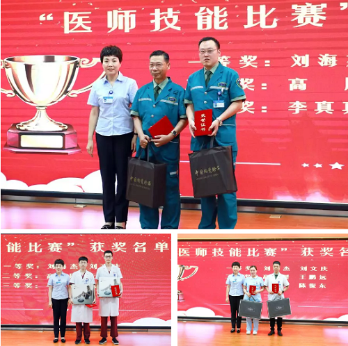 祝贺“医师技能比赛”获奖者:刘海杰、刘文庆;高展、王鹏远;李真真、陈振东。