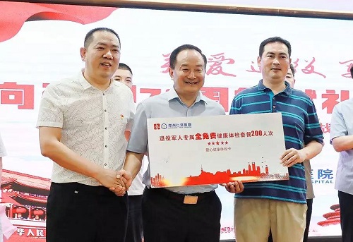 据悉,本次活动,郑州仁济医院为参战退役军人专属健康体检套餐200人次,除活动当天的27位代表外,还有173位退役军人将享受到全免的健康体检项目(参战退役军人的免费体检会一直持续到8月31日);郑州仁济医院还特意准备了家用急救小药箱赠送给参加活动的退役军人。