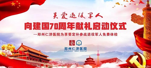 关爱退役军人 献礼建国70周年!由管城回族区退役军人事务局主办,金岱产业集聚区协办,郑州仁济医院承办,郑州仁济医院党支部牵头组织的“关爱退役军人 向建国70周年献礼 郑州仁济医院为享受定补参战退役军人免费体检”活动在南院区学术报告厅隆重启动。
