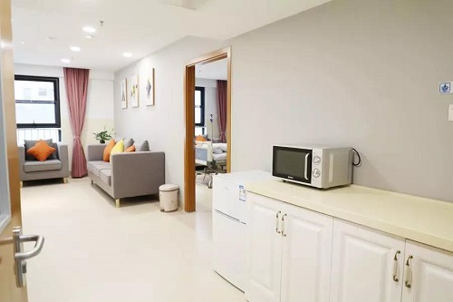 为了更好的满足病友及家属的需求,每间病房均按照宾馆标准设计,配备有独立卫浴、壁柜、躺椅式沙发、大屏电视、配餐台、微波炉、冰箱、饮水机等电器及设备。