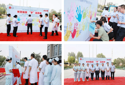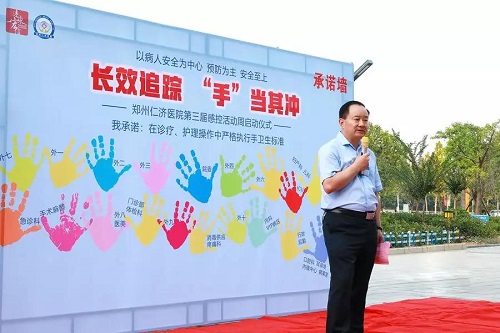 9月3日,在门诊楼前的广场举行了隆重的“感控活动周”启动仪式,院委以及全院人员参加,在聆听了侯建玺院长、徐新莉副院长的重要讲话后,依次在承诺墙上写下了自己的名字,并庄重承诺:在诊疗、护理操作中严格执行手卫生标准。