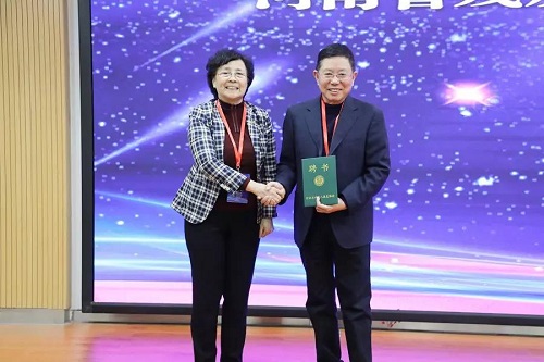 刘景梅会长为名誉主委于长隆教授颁发聘书