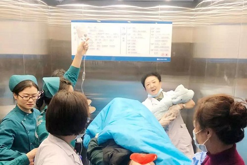 11月16日15时18分,郑州仁济医院接到派诊,一位孕妇即将临产。急救人员及妇产科主任魏赛红立即乘坐急救车前往为其提供保障。