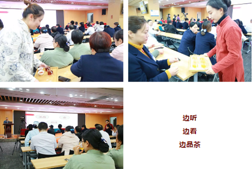 “品鉴会”采用了“茶文化分享与茶艺展示”相结合的方式,让职工们边聆听知识、边领略茶艺的优雅魅力,同时品尝着茶艺师泡好的茶汤,全身的每一个细胞都在深受着茶文化的熏陶、享受着这份非医疗知识培训带来的乐趣……