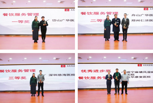 随后,就开始了激动人心的表彰环节。就2019年在HSE管理、总务后勤管理方面表现突出的先进单位和团队进行了表彰,为其颁发象征至高荣誉的奖杯,并邀请获奖代表发表感言。代表们纷纷向集团的支持和培训表达了感谢。其中,郑州仁济医院荣获餐饮服务管理二等奖的殊荣。