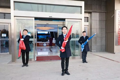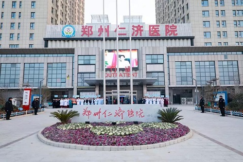 迎着新年的 缕阳光,三位护旗手迈着铿锵有力的步伐,护送着旗帜来到旗台。在雄伟庄严的国歌声中,五星红旗、集团旗以及郑州仁济医院院旗缓缓升起,全体人员行注目礼。