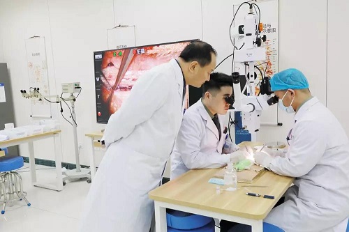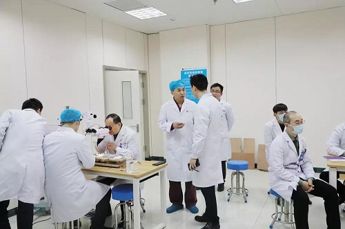 为了让每一位医生都有比拼的机会,又考虑到人员过多,所以对于医生组的比赛,特意设置了初赛、决赛的环节,经过初赛的比拼14位医生晋级决赛。在2019年12月31日,医生组决赛的现场,只见大家眼睛紧盯显微镜,双手稳、准、轻、巧的操作着,一边的评委认真观察着选手的每一步。