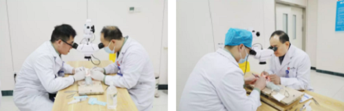 “显微外科血管吻合技能”比赛也是医院的传统之一,每年定时举行,已经持续了很多年。今年创新的将参与比赛的人员分为主任组和医生组,让同层级的医生同台打擂,其目的是为了比赛的公平公正,建立追赶的目标、激发积极向上的智慧和力量。