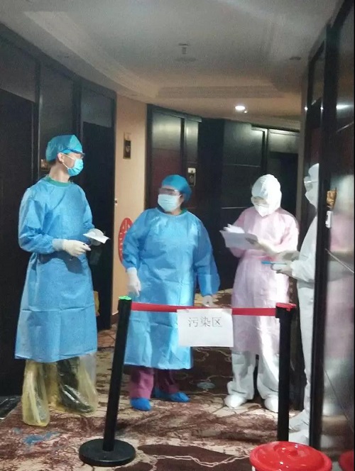 面对急剧增加的隔离人数,郑州仁济医院值守的隔离点儿面临着巨大的考验,为了高效有序的开展隔离工作、守护市民的安康,2月11日早上,徐新莉副院长亲自坐镇,驻守在隔离点儿的一线,与原本驻守的马书丽、郭留生、马忠贤、曹高松、温泉、牛白茹、郭鹏飞、魏文佳,组成了“仁济天团”,阻挡着疫情的蔓延。
