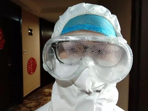 看,护目镜上的水珠,就是她辛苦付出的结晶!是她在战场上洒下的热血!也许从照片上你看不出她是谁,但我们都清楚的知道她是为了谁!