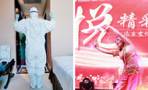 这样的形象与她往日身着护士服的专注、舞台上的翩翩起舞,有着天壤之别,因为她身处在抗击疫情的 线、任何一个细节不容许有丝毫马虎,扛起的重任、冒着的风险都是前所未有的。