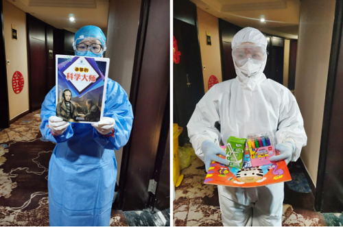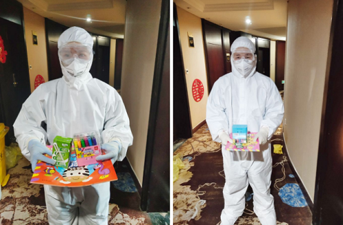 因为隔离的时间相对较长、活动的区域比较小,为了缓解隔离期间的枯燥、避免焦虑情绪的产生,驻守在这里的医护人员,为隔离的小朋友们贴心的送去了故事书、画笔等,让孩子们每天的生活多了一份乐趣,同时也锻炼了孩子的动手和思考能力。