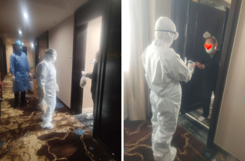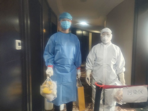 送给隔离市民的水果和牛奶,是医务人员自己的口粮。在巡视的过程中,他们得知大家想换个口味、吃些水果,就将自己的水果和牛奶等食品省下来,留给隔离的市民。他们说,“这些不值一提的,他们比我们更需要,这样也能调解一下他们的生活。”