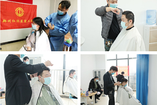 受疫情影响、理发店都还没有营业,如何理发成了医护人员的难题?郑州仁济医院工会得知这一情况之后,工会主席丁丽积极联系、多方协调, 终在院办杜志萍主任的辅助下,与“鑫零点美发”达成爱心理发的行动。