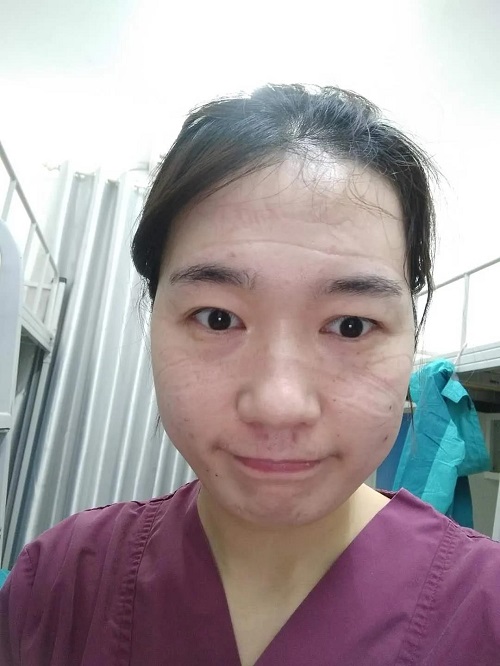 穿着密封的防护服,带着口罩护目镜,变得非常笨重,我大口大口地呼吸,气喘吁吁的,我不断调整我的呼吸,感觉到了缺氧带来的虚脱。到大概15:30的时候,党友副队长让我先回宿舍休息,说晚上还有9个小时的夜班,别硬撑着。