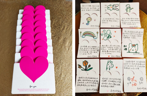 除了为11位援建工人准备了赞美卡,还在28日晚上,为支援返回的保洁人员送上了精心准备的赞美卡,并贴心的将其送到隔离的房间,无微不至的照顾着支援返回的保洁人员。
